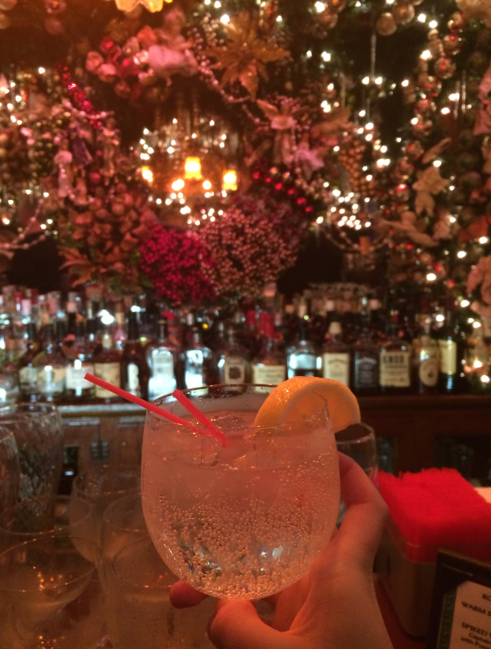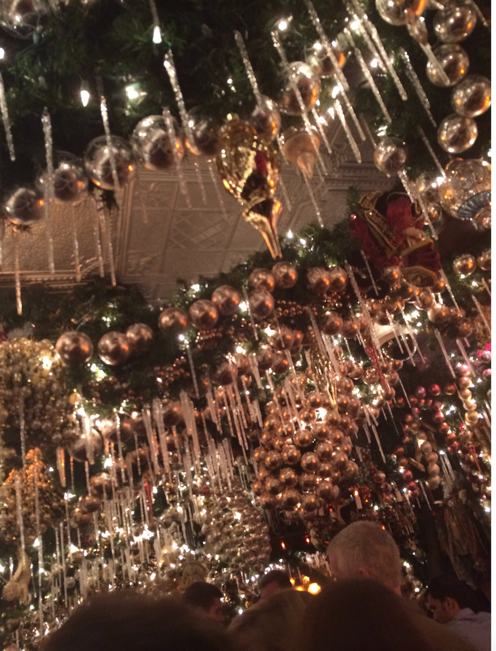 This is not just a German restaurant - this is the winter holiday restaurant. What I mean by this is that Rolf's goes all out for the holidays of December. They create a small, majestic, bright arena out of its simply painted walls and tables. When you walk in, you're surrounded by Christmas lights from top to bottom, pine tree garland wrapped around every area of the walls and ceilings, holiday dolls in between the lights and garland, ornaments tucked into each place all around the room. and fake icicles hanging from above. Once you walk into Rolf's, you'll forget that you're in a simple restaurant on a random street in New York.