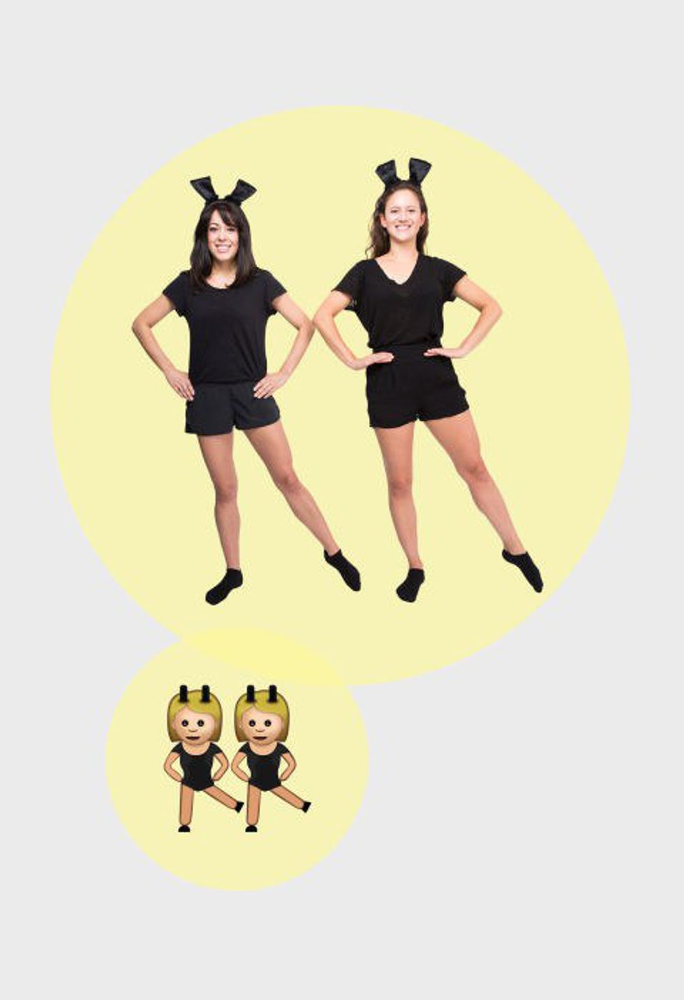 Another super cute costume, which is also possibly the best squad goals ever, is to dress up in an all black leotard and rabbit ears with your BFF. Not your average Halloween bunny, that's for sure. This may get a little uncomfortable though since the leg-raised pose is basically an idle part of your costume's presentation.