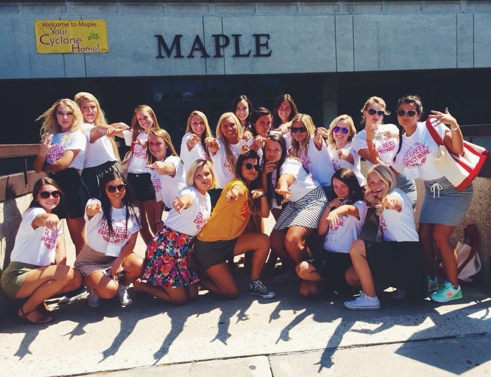 A what? Yep, you read that correctly. A Rho Gamma, or, Rho Gam for short, is a woman who has gone through both sides of recruitment and is basically your go-to person all week for anything you could need. They're there to answer any questions you might have throughout the entire process, keep everyone's energy level up, be someone you can count on all of recruitment and ultimately help you find your home in a sorority. If you get lucky like me, they'll be your shoulder to cry on all day when you don't know what to do and maybe even take you to Target to make you feel better.