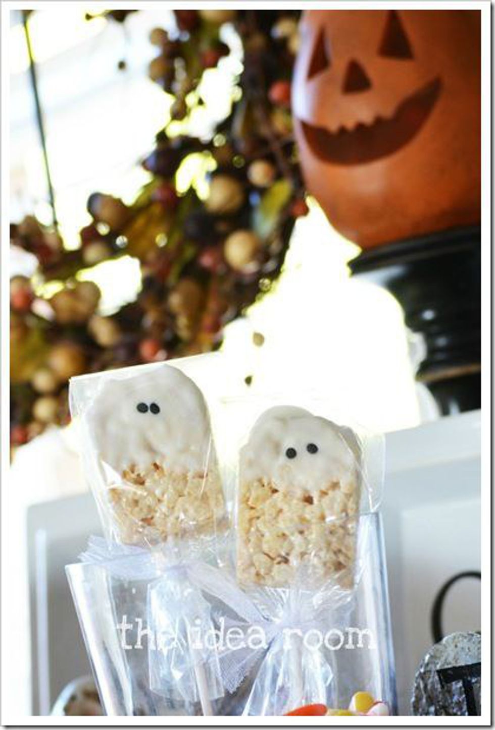 This was my favorite Halloween treat as a kid. Make rice krispie treats the way mom used to (the recipe is on the cereal box). Cut them into ghosts and add some chocolate chips or black icing for eyes and a spooky mouth. Why stop there? Get creative with shapes and toppings. Ideas here