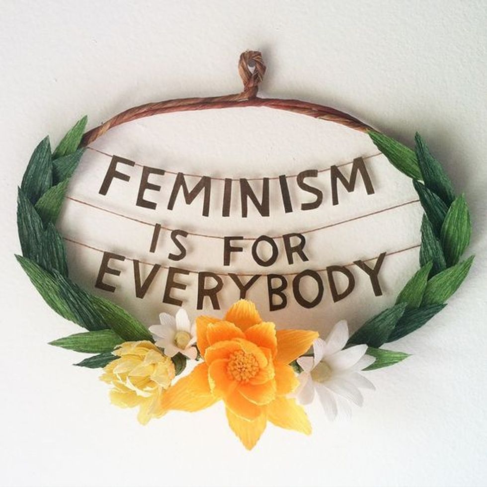 People who disavow feminism often have the idea that a feminist has to have masculine qualities. While masculine women can certainly be feminists, ANYONE can be a feminist, and a feminist can look like anyone; feminists don't condemn women for liking traditionally feminine things like wearing makeup or being a stay-at-home mom; feminists also don't condemn women for wanting to look sexy. Feminism also encourages women of ALL sizes to love their bodies, every woman is a 'real woman.' It's about encouraging women to do the things they like without being judged.