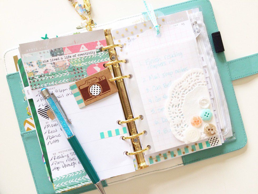 I love writing in a planner. I'm definitely a person who has to be organized at all times, so writing down my to do's or homework assignments day to day makes things a whole lot easier. Take your planner with you everywhere you go, and use only one. Take it to class, to meetings, work, the grocery store, etc. Always write your homework assignments and when they are due in your planner before getting up to leave class, and cross them out once you've finished them. It will help you keep things organized and you wont't forget to do certain things because it's all written down. There are so many fun and cute planners out now that it's oddly exciting to sit down and plan out your week.