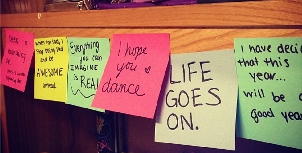 It's too easy to lose motivation during the school year, especially when you get closer and closer to graduating. When it feels like your drowning with work and school and trying to have time for yourself to relax and do fun things, having something to remind you things are ok ok is a must. Write motivational or fun notes on sticky notes and attach it over your desk -- or make a whole wall. Do something that you can look at when you're feeling discouraged and know that it will motivate you or cheer you up.