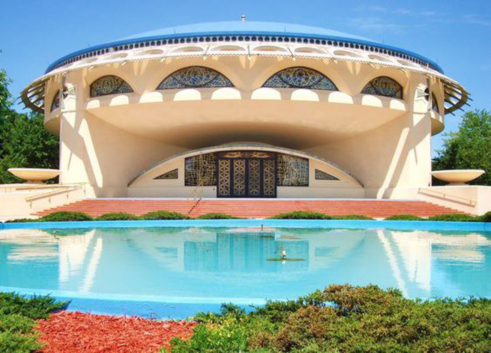Designed by the famous architect Franklin Lloyd Wright, this white and blue circular building is a one-of-a-kind church with a gold and blue interior and beautifully detailed blue stained glass. It’s worth the trip.