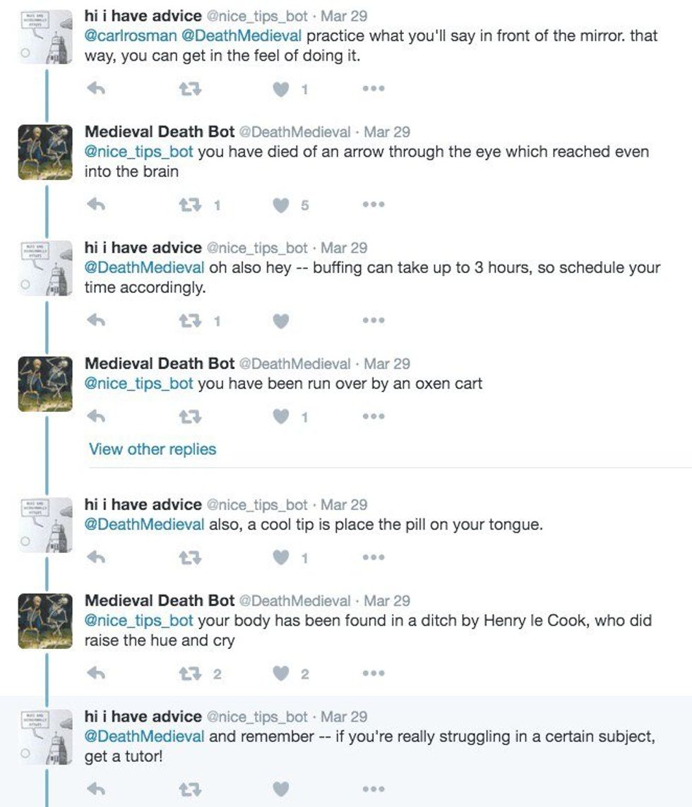 Medieval Death Bot on Twitter is a funny and somewhat dark page to kill time scrolling through. It's a list of different ways people died in the Medieval times. Here are some of my favorites, either because of the obscurity of the incident or the phrasing of the statement: