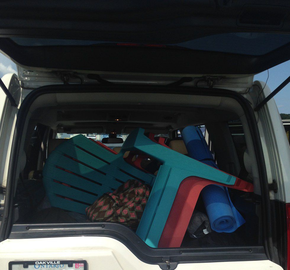 We played tetris to fit them into our car, but it was so so worth it when you could drag your chair into the shade to relax before the day of music got started. Also, I have since seen this exact chair everywhere I go. There’s two in front of the hotel here in Oberlin, and every time I see them I think about Wayhome. It’s a good memory.