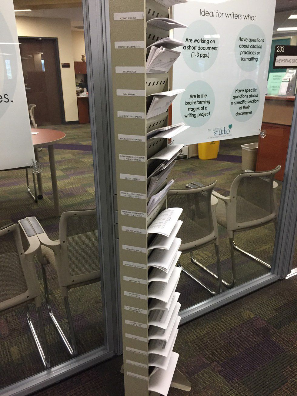 On the second floor of the Library houses the Writing Studio that offers one-on-one help with essays and papers. However, without further inspection, many people overlook a little paper filer right by the entrance to the Writing Studio. This paper filer houses the key to amazing and thorough essays and papers. The filer is filled with free paper handouts that provide guides, outlines and examples of different writing techniques, formats and linguistic aspects. For those students who may not be the best of writers, you can stop by and take home free guides ranging from APA and MLA formatting help, resume help, comma usage help, essay introduction help and much more. My suite mate was having trouble switching from APA to MLA format for one of her classes, so I stopped by and picked her up an MLA format guide, and it has really helped her improve her essays without feeling obligated or pressured to get one-on-one help or spend hours on the computer trying to figure out how to format her essay.