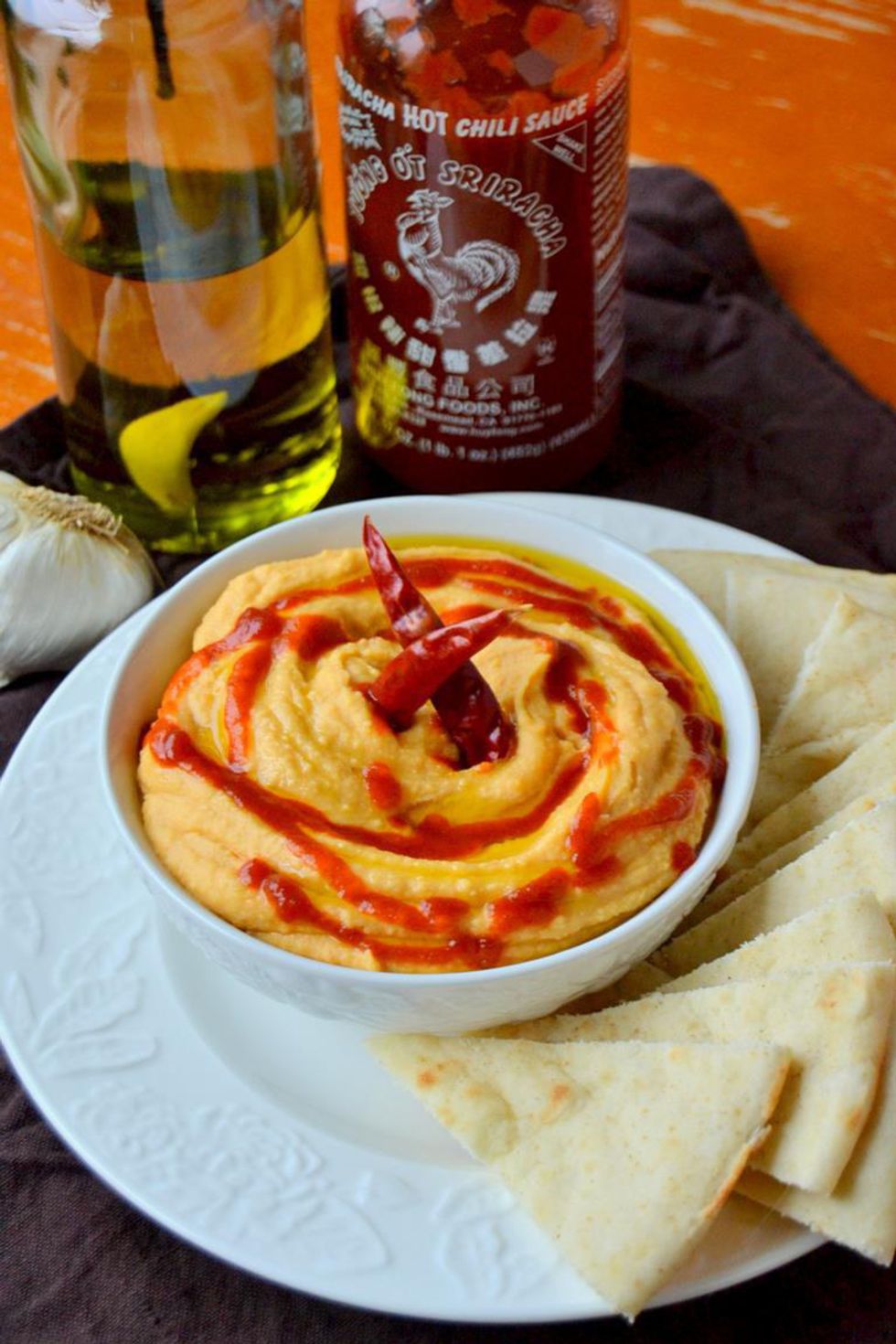 Take the regular hummus from the salad bar, and add Sriracha to it, adjusting to your taste. Add a little bit of lemon for added flavor. Eat it with pita bread, celery or broccoli florets. Alternative: Try adding red pepper flakes to Marinara sauce. It is true magic!