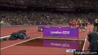 Steeplechase is just a strange concept. Competitors run laps around a track, and every few meters they jump over large hurdles (like horses), then splash through a pool of water on the other side. The soggy-footed athletes run almost 2 miles total in this weird 3000 meter race.