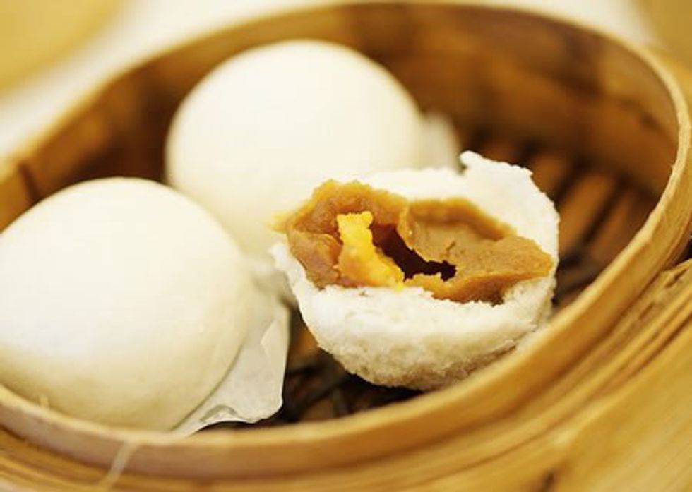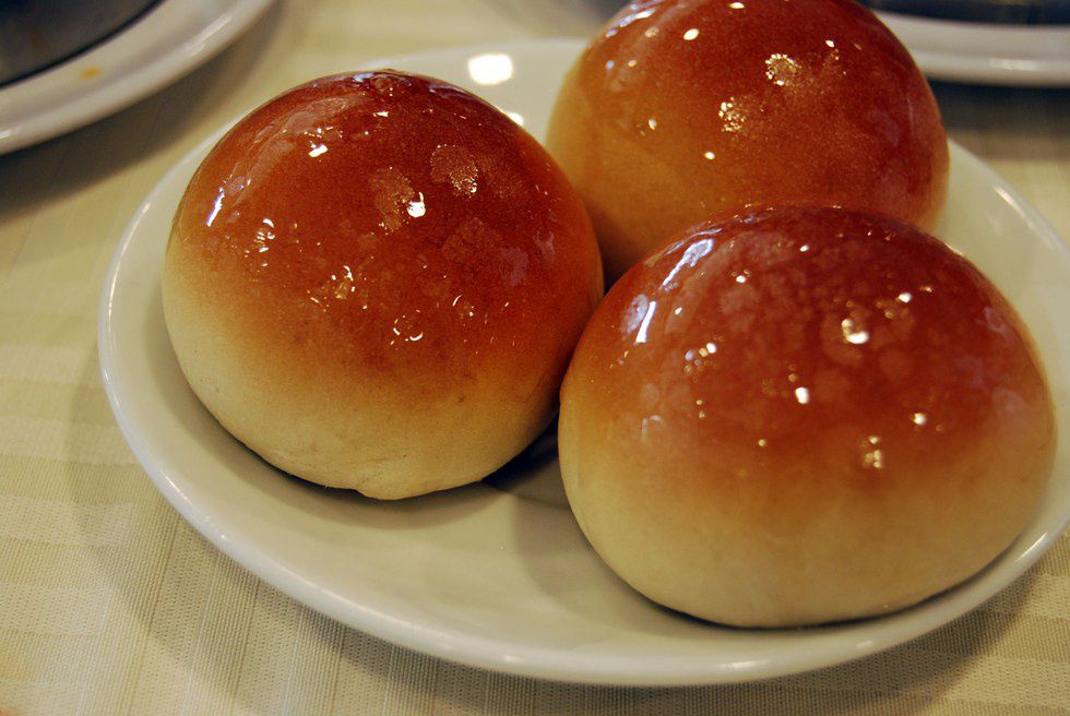 Tender clusters of shrimp are wrapped in a glutinous rice skin and steamed until the outer layer becomes translucent.8. Lian Rong Bao, Lotus Seed Paste Buns (莲蓉包)