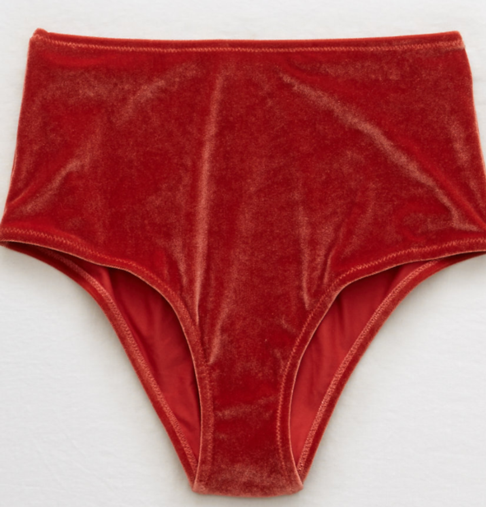 Velvet has been the material of the past year and i see it continuing for a while. This is probably why aerie came out with some high waisted velvet bikini bottoms, they also have matching tops FYI. These bottoms come in a gorgeous harvest red/orange color. These bottoms go for $29.95.