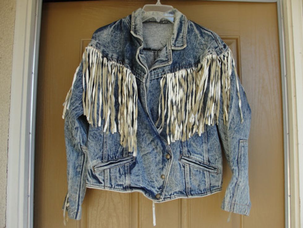 Big jean jackets are currently trendy right now, but they were always a cool piece of clothing. With bands like Bon Jovi, Ratt, and Poison wearing jackets like these, many people had them to wear when going out! With the fringe accent, it adds a flare to any outfit.