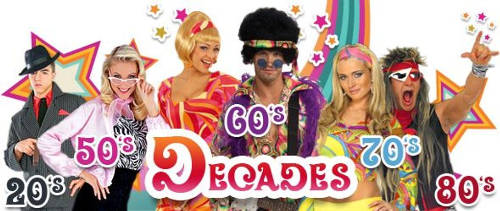 Come dressed up as a flapper or maybe even a hippie. At least you will be able to choose which one you like the best and keep others guessing.