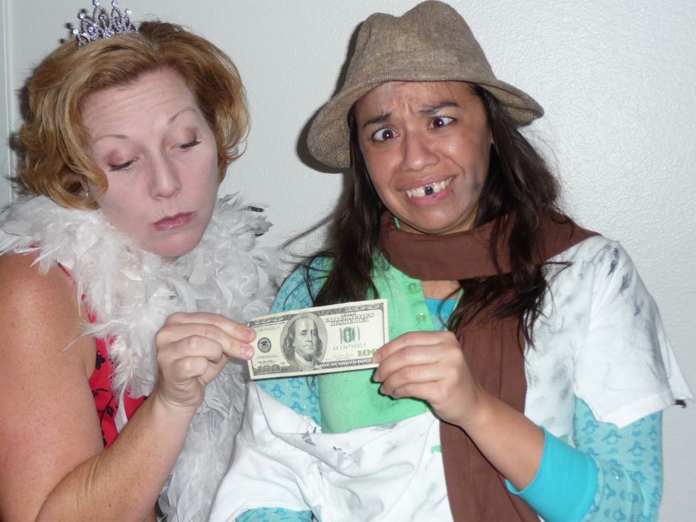 Take your pick. Costumes can range from fancy dresses, jewelry, or suits to dirty t-shirts.