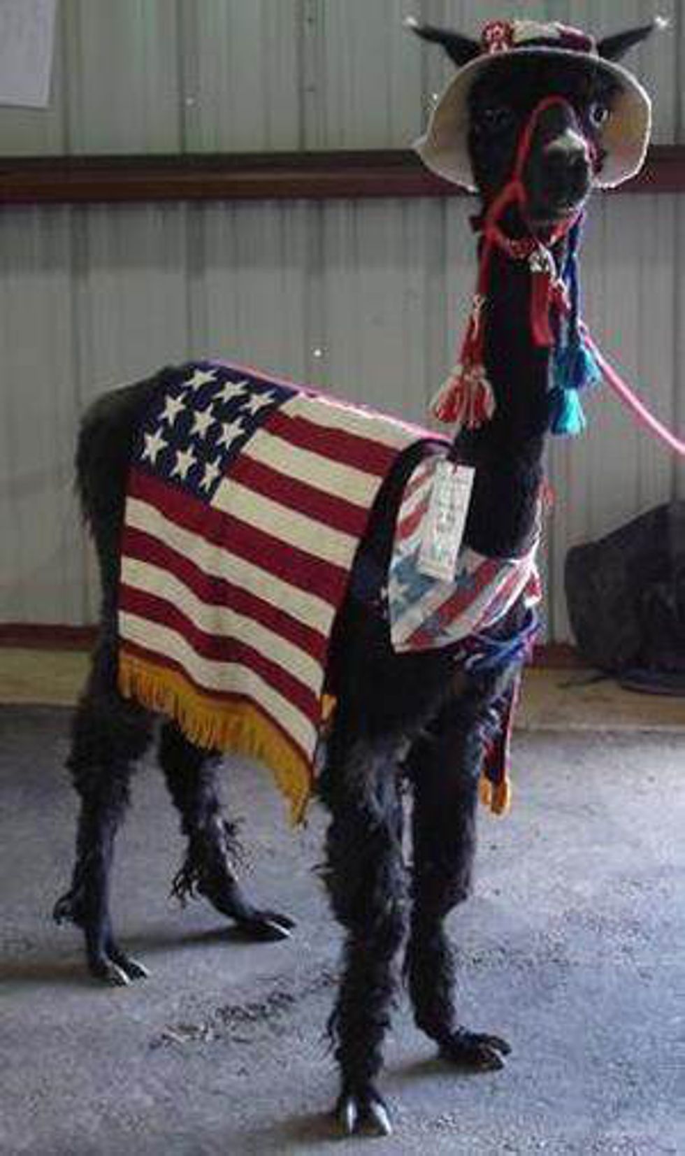 1. This flag-toting llama ready to strut its stuff