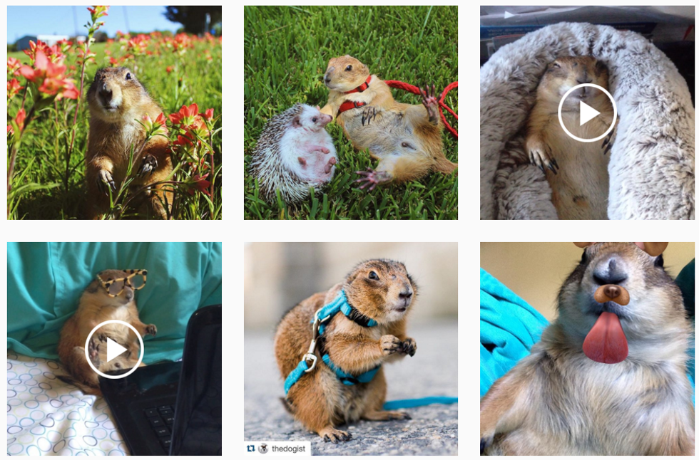 Bing and Swarley are chubby little prairie dogs that live in Texas and have over 80,000 followers on Instagram. If you’ve ever wondered what a prairie dog bark sounds like, or what a prairie dog looks like with a little harness and leash on, you can find out by following this account.