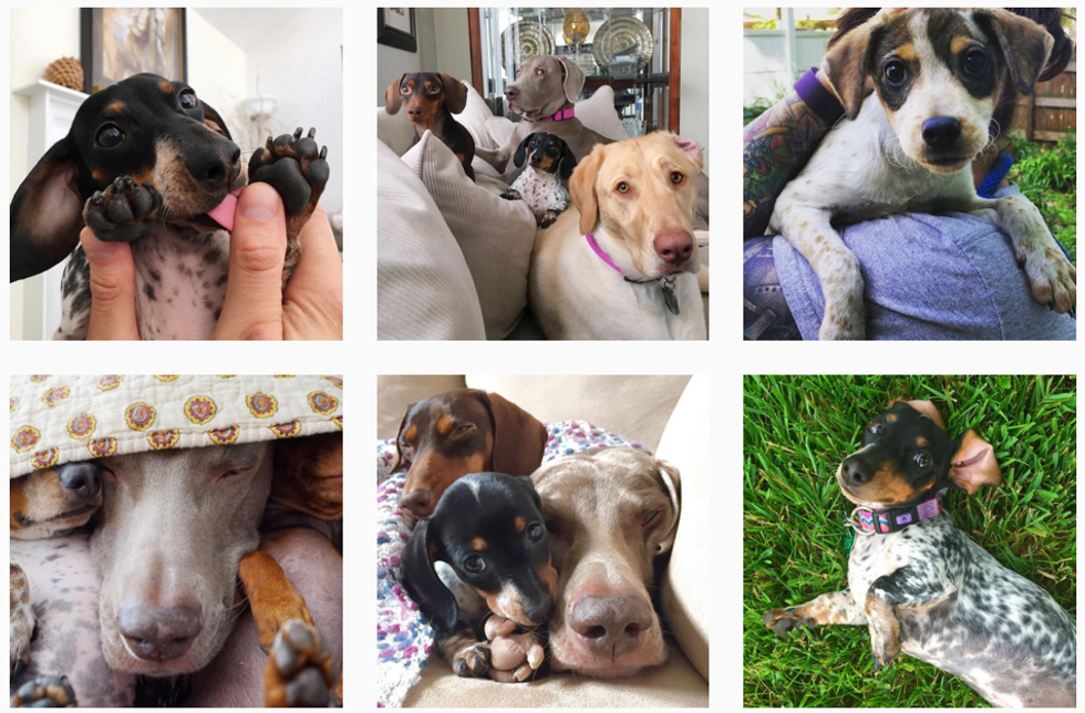 These dogs are definitely Insta famous, with 1.2 million followers and a book deal. Harlow, Indiana, and Reese have been known to sleep in an orderly stack, with the two littlest dogs somehow balancing on top of Harlow the Weimaraner.8. @GoatsofAnarchy