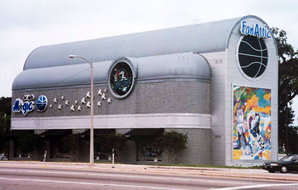 When driving on I-4 approaching downtown, it was impossible to miss the giant basketball window atop FanAttic. Popularized for being the official Orlando Magic merchandise location, this unique building sat at the corner of Highway 50 and Hughey Ave. If you wanted any type of merchandise featuring the Magic logo, this was your one-stop shop. Only the coolest of parents made time to stop here. The building was demolished in 2007.