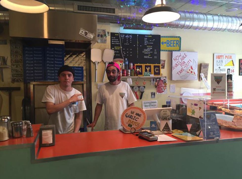 Never have I had so much fun ordering pizza! The walls are covered with little masterpieces, often drawn on old pizza boxes. Quirky decorations are strewn about in the best of ways, including an "employee of the month" frame that displays an overflowing blender and a sign on the front door that reads "sorry, we're open". The people that work there are so friendly...just don't ruin their fantastically homemade signs!