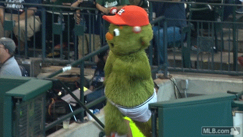 Orbit, the mascot of the Astros, is something else. Here's a GIF of him streaking at a game: