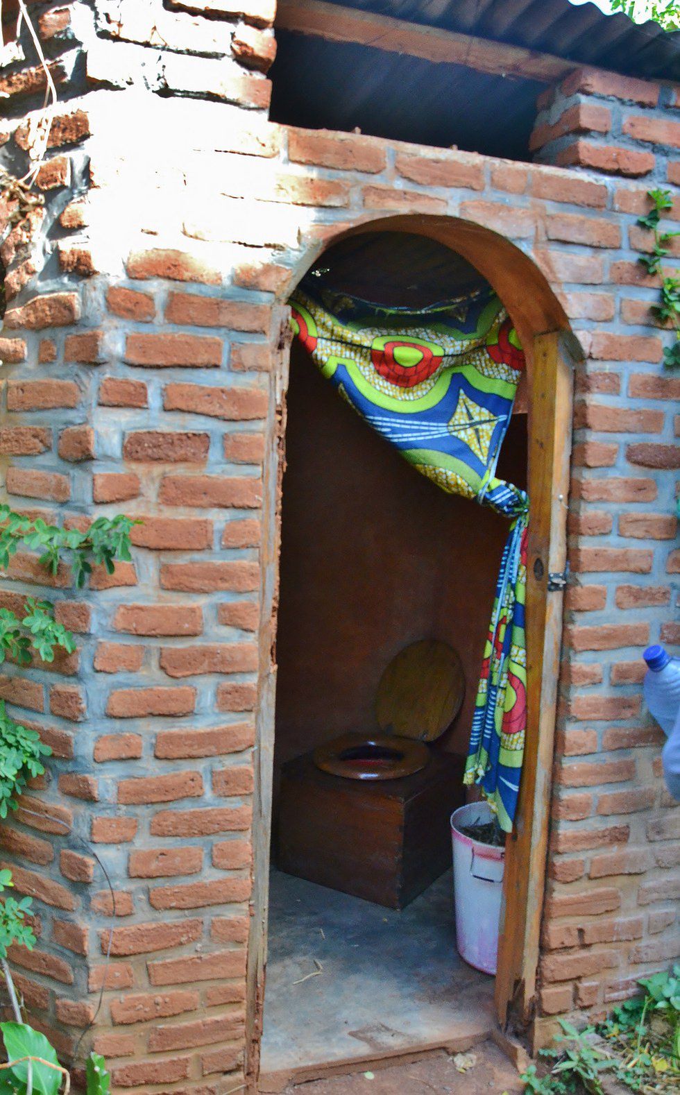 It was made, used, and explained to me by the Nordin family, two former Peace Corps volunteers and their daughter, who operate a permaculture demonstration farm in Malawi. There are many different models, so feel free to adjust it to fit your situation. This model uses a five-gallon bucket as the toilet bowl, encased in a wooden box (complete with a cute little toilet seat). Next to the toilet is another bucket filled with a mixture of soil, partially decomposed leaves, and small twigs. This is easily gathered through normal home care in the form of grass clippings, garden weeds, corn husks, raking, sawdust, etc. Out of sight are three large composting bins. The bins are open on the bottom to allow worm access, and one side is made of chicken wire to allow for aeration. By the time three bins have been filled, the first is usually fully composted, and can be emptied.
