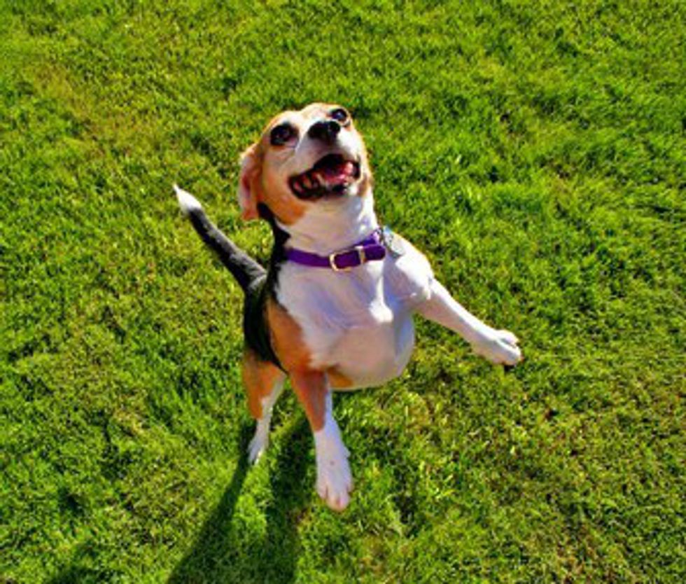 It doesn't matter what it is--a promotion, good grades, a vacation; your dog will immediately start jumping up and down and barking for joy if you show any signs of excitement. All you have to do is ask them if they're excited for you too in a high-pitched, squealing voice. For example: "Are you happy I'm going on a date tonight?" Say it as excited as you can, and your dog will be instantly excited too, even though they have no idea why.