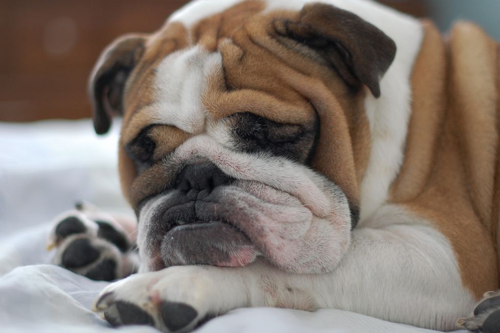 Okay, how could you not fall in love with this smushed faced cutie's wrinkles? Just look at those big ol’ lines and that undershot jaw! This breed of brachycephalic dog, called the Bulldog, are known for being lazy but loyal companions.