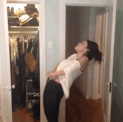 Even when jeans semi-fit you still find yourself doing the "pants dance". Jeans are not the kind of pants that you "just slip" on. You think you're going to get ready in 5 minutes when you have the battle of jeans to deal with.