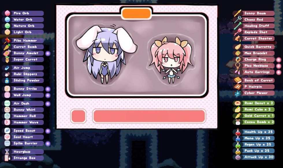 Stop me if you've heard this one before: a bunny wakes up in a human body, befriends a fairy, and wields a giant hammer through her search for her master and her master's sister. This game has one of the most interesting concepts I've seen in quite a while at the core of it, and you could tell that the people working on the game had fun with it.