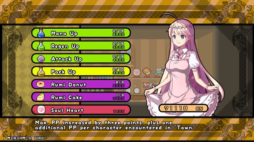 A common complaint for these sorts of games is that they use grinding in order to pad out their length, but I didn't find that in Rabi-Ribi. While you level up weapons by using them and gain stat increases by potions you find throughout the game, those things happened naturally while I was exploring. You can purchase potions, items and other upgrades in Miriam's shop with EN, or this game's currency for defeating enemies. The game rewards the player with reasonable amounts of EN, so I'd get enough EN from each area I was exploring to purchase many upgrades without unnecessary tedium.