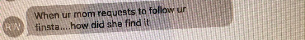 Pray your mom never finds your finsta and requests to follow you. If you're using it right, your posts will scare her away from ever claiming you as her child in public ever again.