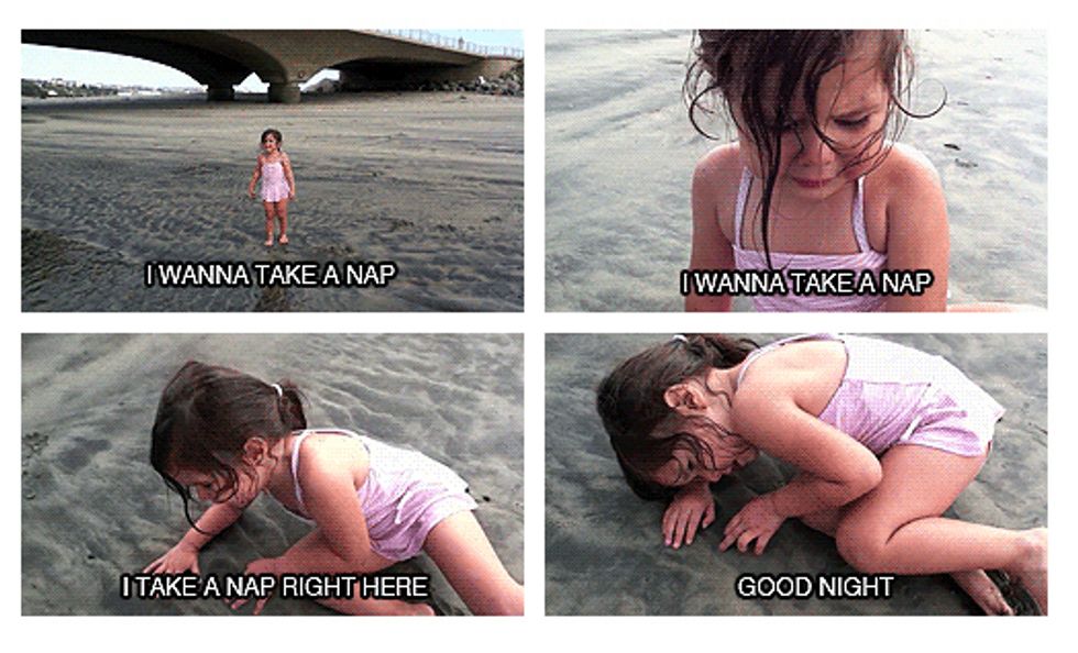 Yes, it's strange, but falling asleep on the beach is pretty much inevitable and actually very relaxing. Especially if you have someone nice to cuddle up next to you (cue the mushy and disgusting couples "aww" here). A few friends and I went over to the beach a few weeks ago. We all were so exhausted, which prompted us to engage in a snuggle sesh/collective group nap on the sand. Needless to say, it was probably very strange to the people around us, but we had fun.