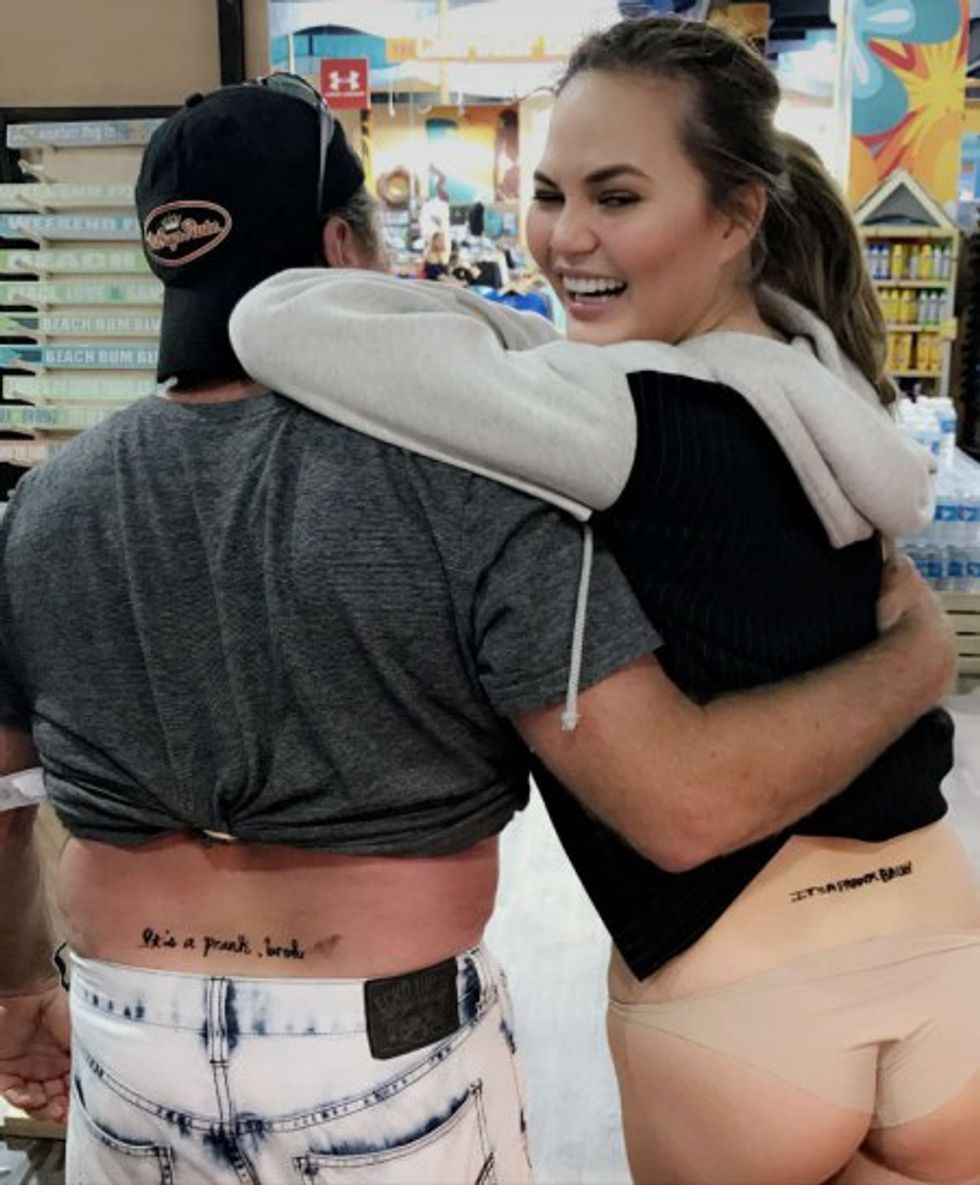 1. I love Chrissy because she is not afraid to admit she gets jealous at times. Recently, while her, Luna, and John were on the road for his show, John danced with a fan girl at his performance. To get back at him, Chrissy went with a random guy to get a tattoo. The pair got "ITS A PRANK BRUH." on their lower backs, then revealed it was just a henna tattoo.