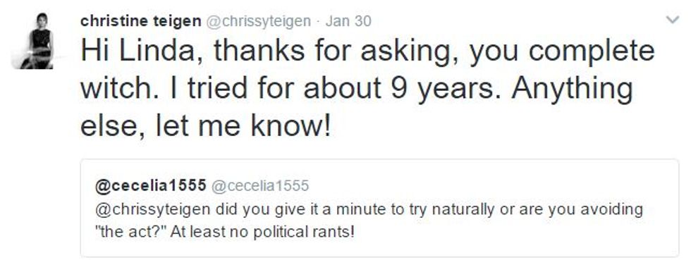 If you take anything away from this it should be don't mess with Chrissy Teigen because she will shut you down real quick. Keep doing you, Chrissy.