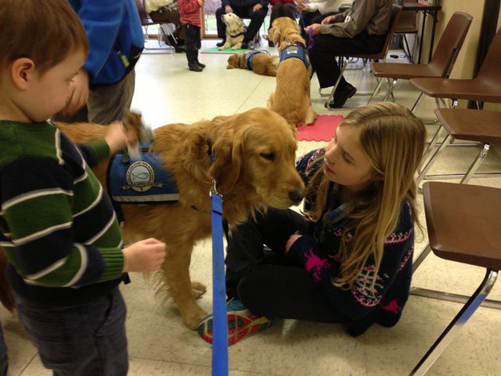They comfort people in times of need, like after the Newton, Connecticut tragedy. People sat there and were comforted from petting these dogs. It is also very common for goldens to be used as guide dogs and they can be trained to help someone in almost any way.