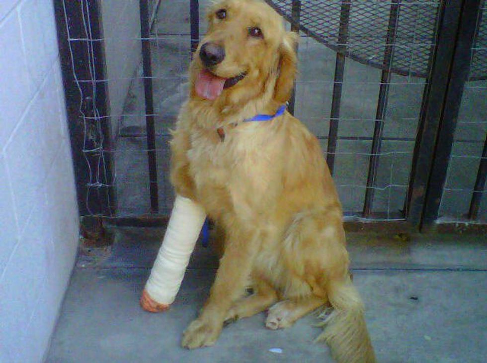 Goldens do not show pain. That is why it is so hard for people to know when their dog is sick or hurting. Mine broke his foot and still would not let go of the ball in his mouth. Even with the cast on, he was still walking (limping) around with a smile on his face.