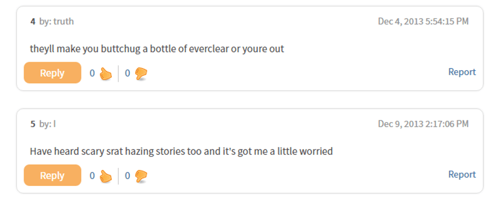 From greekrank.com, here are some screenshots of a conversation on hazing...