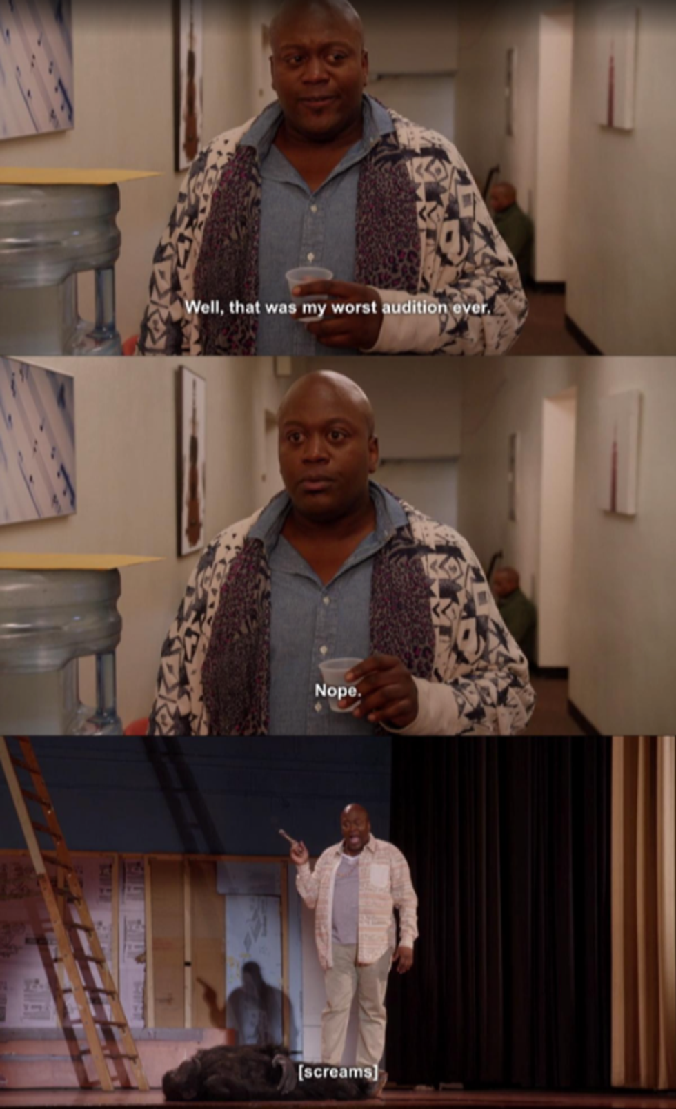 8. Titus is willing to go the extra (and super weird) mile to get a role on Broadway.