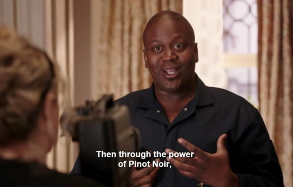Titus is a true friend who listens to Kimmy's interesting yet distrurbing intimate details of her life when no one else wants to hear about it. Kimmy and Titus certainly have some ups and downs over the course of the series, but they always patch things up in the end.4. Two Words: Pinot Noir