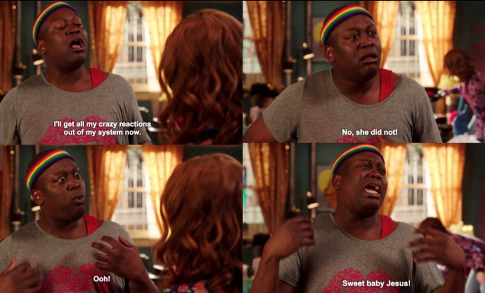 Netflix's "The Unbreakable Kimmy Schmidt" describes a woman, Kimmy Schmidt played by Ellie Kemper, who is reduced from a doomsday cult and starts life over again in New York City. Kimmy's roommate Titus Andromedon, played by Broadway veteran Tituss Burgess, is our broadway-diva-spirit-animal who suffers wardrobe malfunctions, audition struggles, and occasionally a little cultural misappropriation. He reminds us that you don’t actually have to be in a show to sing on Broadway. Between his uncensored, witty remarks to his desperate desire to become famous, Titus embodies what we all try to strive for, recognition and success! So, in an unabashed celebration of Titus and all of his glory, here are 8 reasons why we love Titus Andromedon!