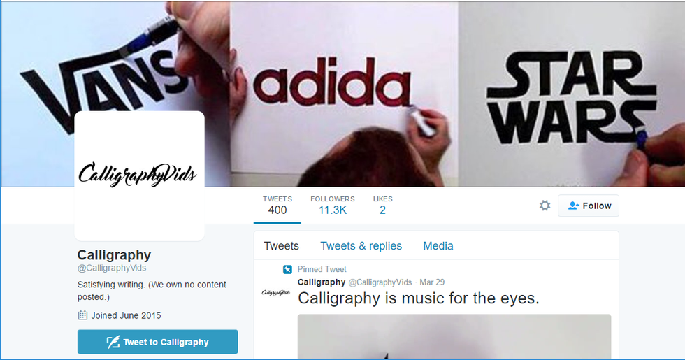 This is a super cute account that posts videos of people writing certain words. They also copy fonts of popular brands, and it's very fun to see it all side by side.