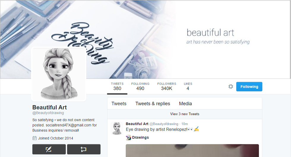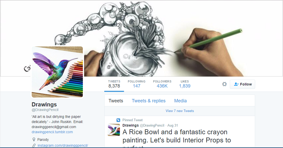 This account essentially retweets the best pieces of art from other accounts! It has a very wide array of mediums and artists, so it's definitely one to check out.