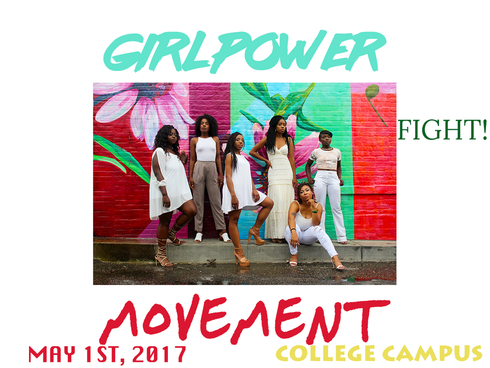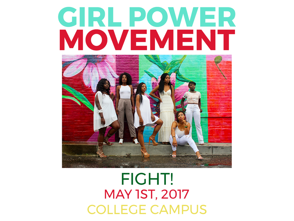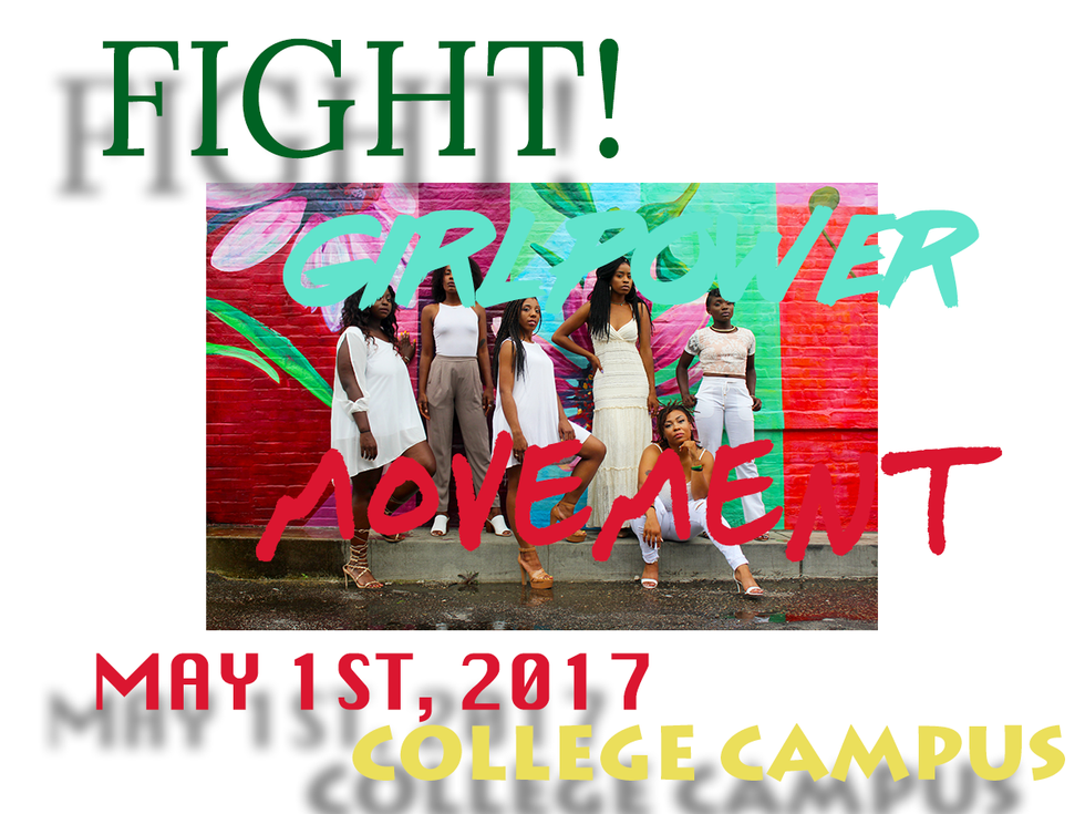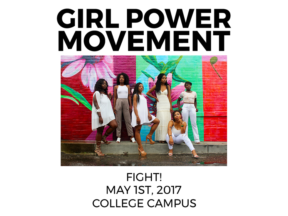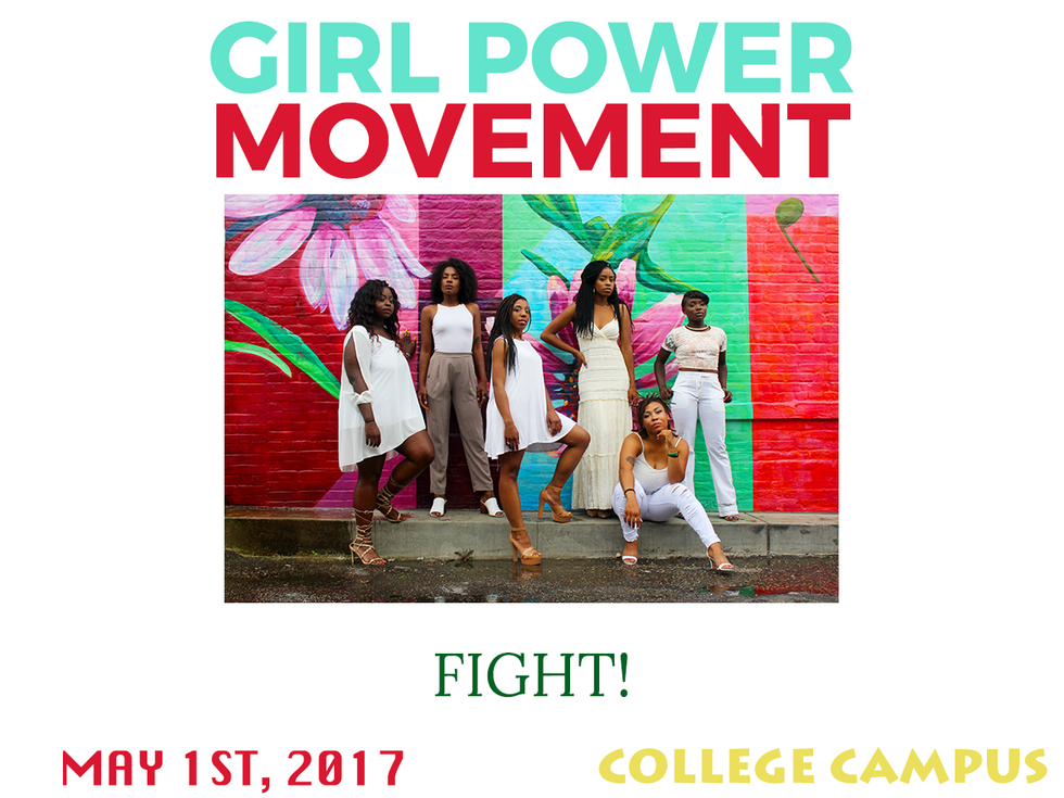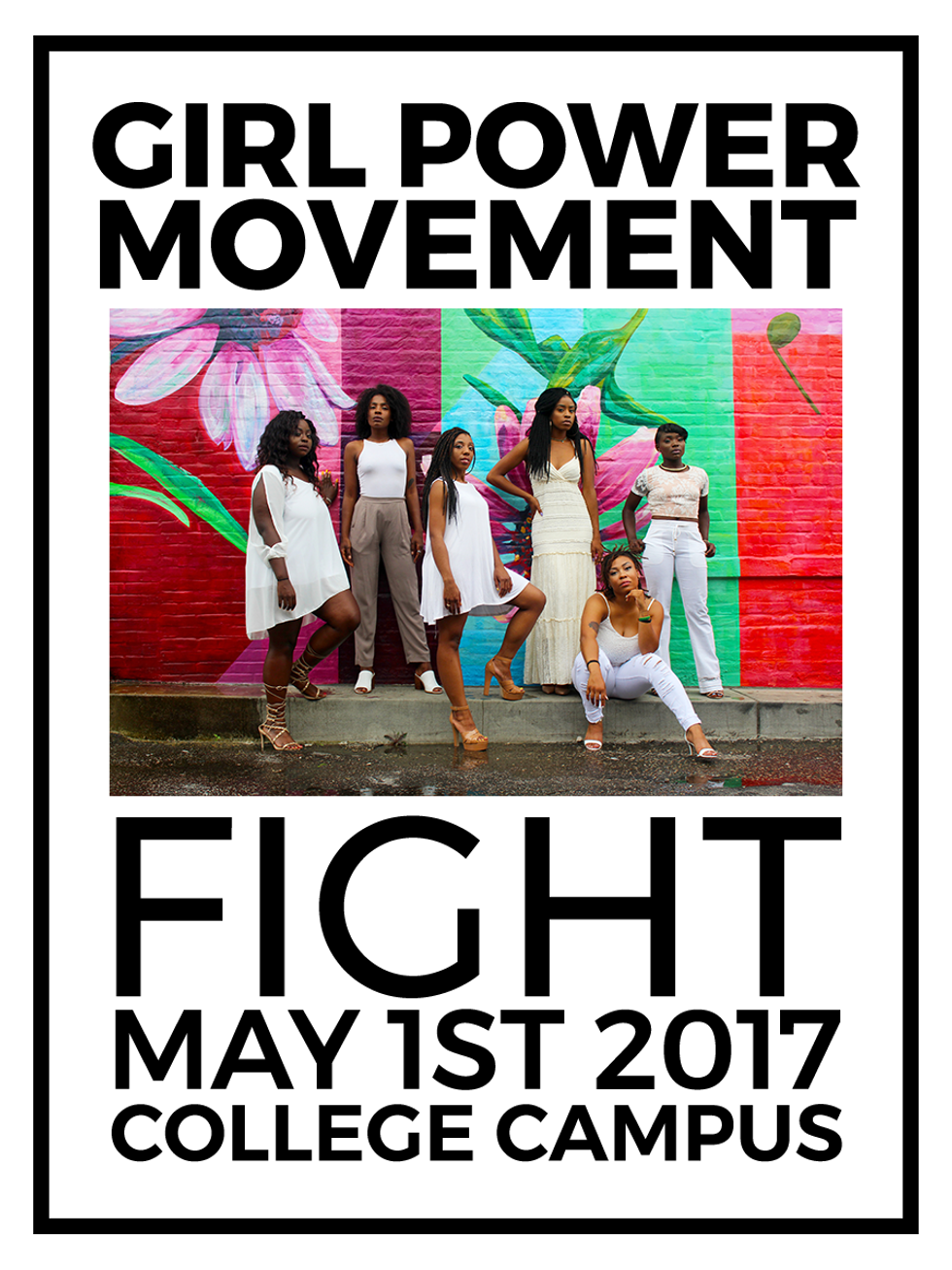 I'm not too proud of this design-wise, but it just looks more balanced and symmetrical. "Fight" is the largest word, but it does not take away from "Girl Power Movement," since that is bold. You get the point. You can read it easily, and you aren't lost. Something so simple can go a long way.