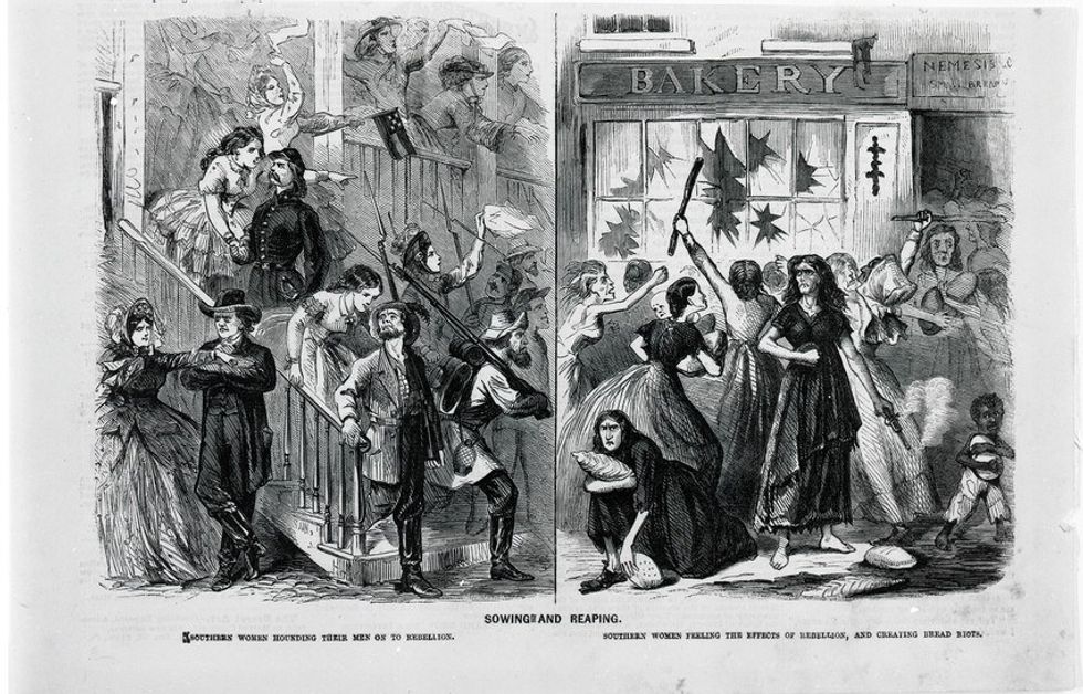 Approaching the last stretch of the Civil War, the winter of 1963 was hard-hit by Richmond, VA. Supplies were becoming very tight in the Union and Confederacy alike, and that winter had been harsh -- reports say that there had been 20 snowfalls in Richmond alone. Fed up with such conditions, the Richmond women met and marched to Capitol Square, picking up hundreds of followers along the way. Jefferson Davis attempted to appease the mob by throwing money at them, yet when things took a turn for the worse, he threatened to open fire. This event would go down in history as the Bread Riot, and perhaps was one of the first American accounts of 'hangry.'