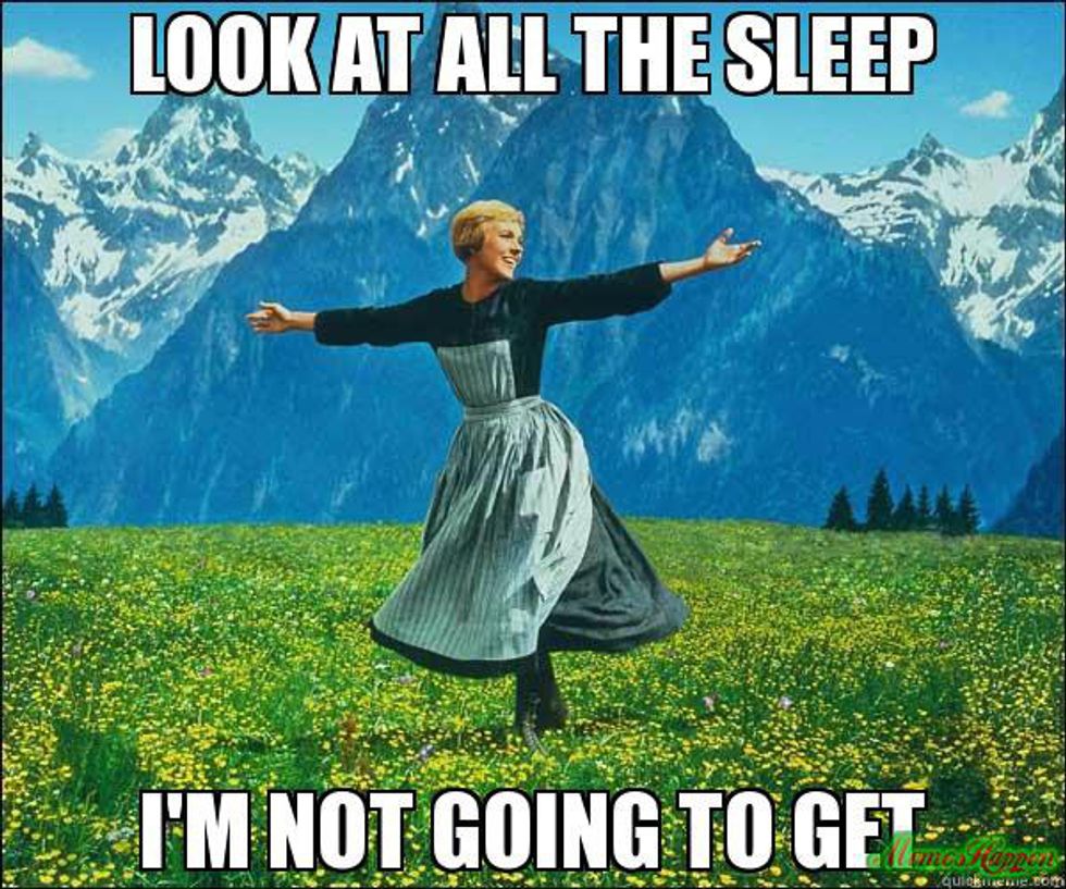 In the past three days of tech week for "Antigone," I have been in the theater for 26 hours. Considering I had a full load of classes on one of those days, and I spent over a day's worth of hours in the theater, you don't need to be a math major to figure I need to catch up with Mr. Sandman.