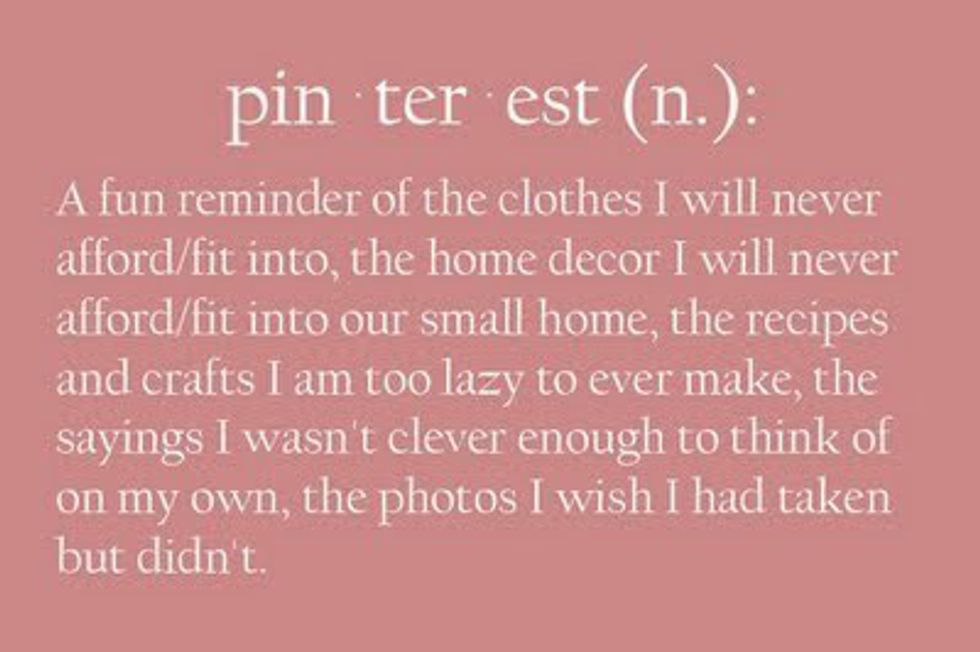 While there are numerous arguments against the rise of social media and technology in our society, many of which I agree with, there are some benefits that have truly been life changing. Sure, the access to news is great and it's nice (sometimes) that most everyone has the ability to voice their opinions nowadays, but there is one app that is the true fountain of gold: Pinterest. If you're an addict like me, Pinterest is where you become a home decorator, a world renowned chef, a fashion diva, a handyman, and a traveler. Pinterest is one app that I am not ashamed to be addicted to because for some reason, it just feels superior to the others. If the following symptoms apply to you, then you suffer from Pinterestation, a common affliction with no known cures.