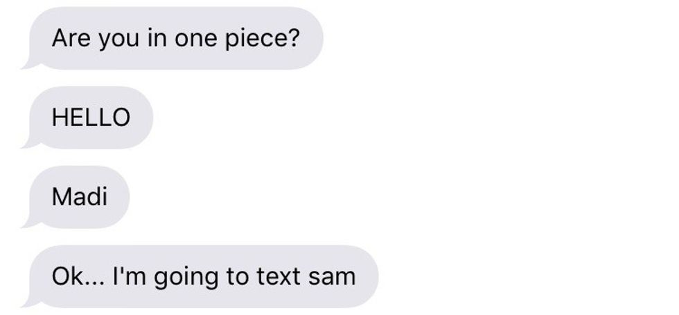 I have received texts like this (and so has my roommate) many-a-time. Whether it's after a night out or just to wake me up bright and early, my mom's text messages tend to work better than an actual alarm clock.