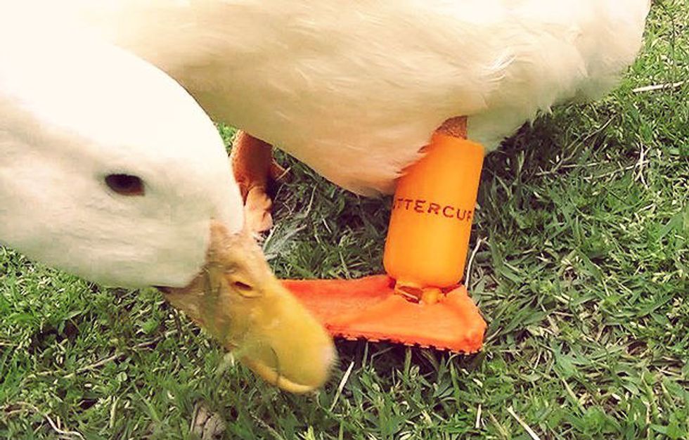 Buttercup the duck was born with a backwards left foot in a high school biology lab in Texas. Realizing that she couldn't survive in the wild like that, Mike Garey had her foot amputated and a 3D printed foot and sock put on. The foot and sock were printed out of silicon in order to enable the flexibility required to be able to swim. Today, Buttercup the duck performs all the other duck-like movements of Garey's flock. Check out Buttercup with her new prosthetic. Of course, not only can duck prosthetics be printed, but human ones as well. By delivering cheaper to manufacture prosthetics, more people would be able to access them and live the life they want to.