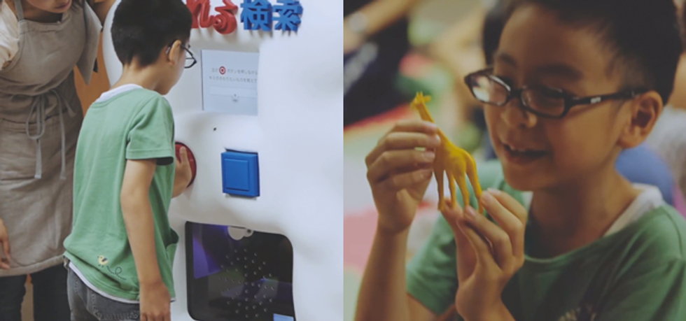 By combining voice recognition technology with a 3D printer, Yahoo! is making feeling possible for a school of the visionally impaired in Japan. The Hands On Search turns voice queries into physical objects. There's not much else to see except that the wonderment and joy of the children feeling a giraffe or a tree for the first time is truly a heartwarming, if surprising, use of 3D printing.