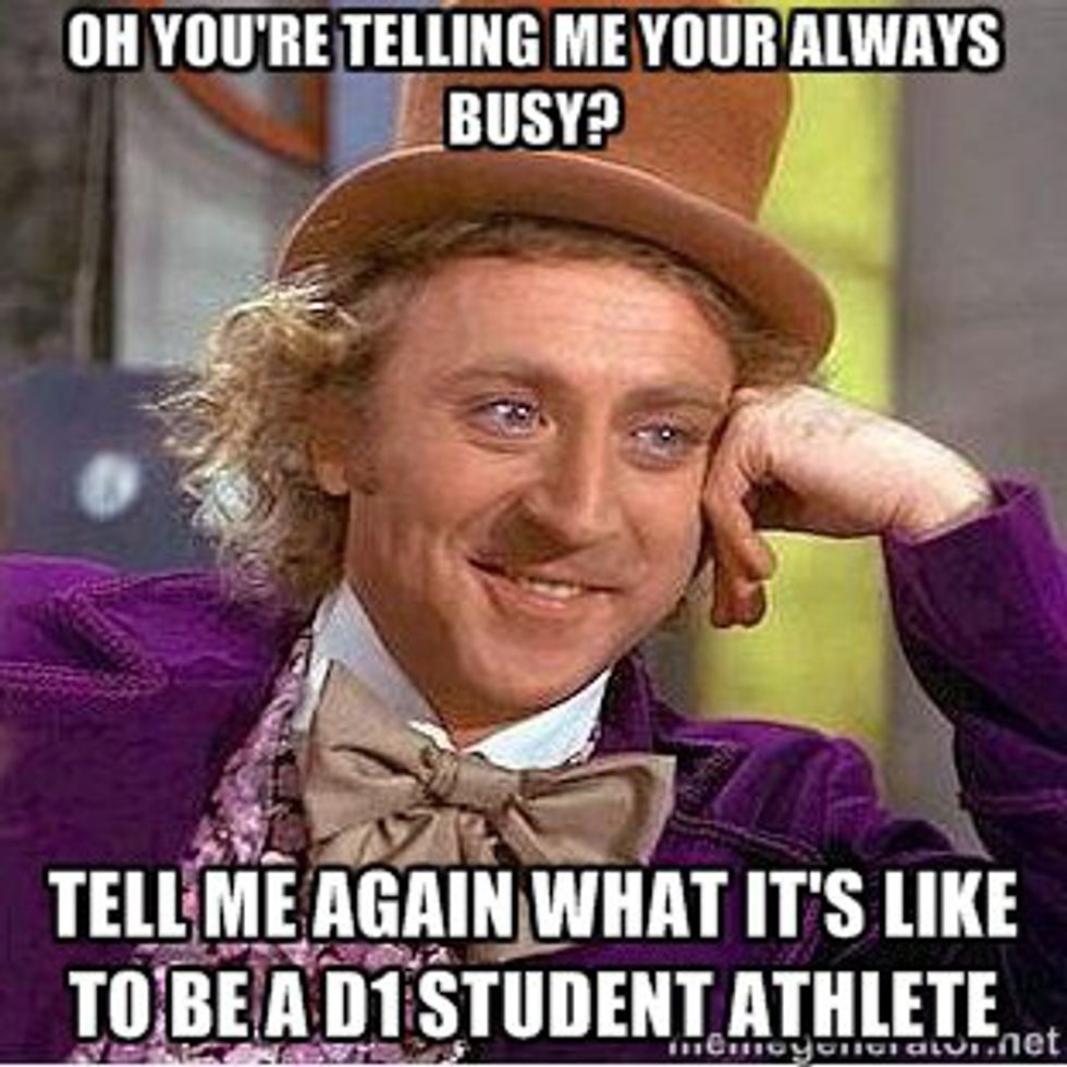 If you don’t know this acronym it means “Non Athlete Regular Person.” They do not understand the struggles of being a student athlete even if they say they do. Picture this… You just get back from classes and a three hour long practice of sprints and lifting and just want to complain about how hard the day. They respond, “Oh my god, I know! I had three classes today and only an hour in-between! I didn’t even have time to come back and take a nap after class.” Then here’s my face: -___-